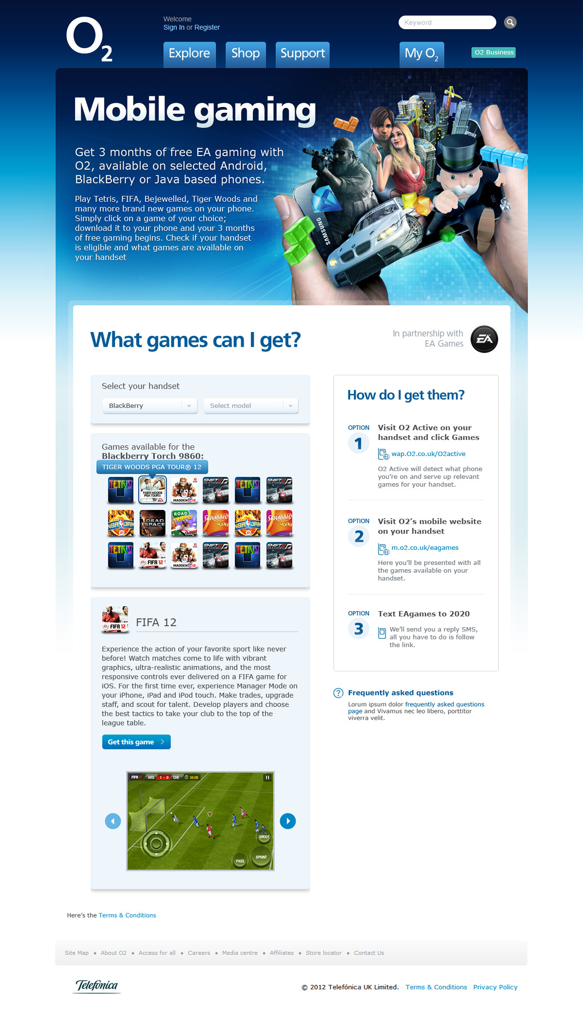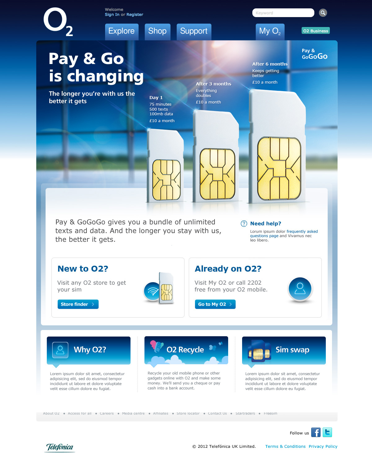 As part of the ‘Portal Scrum’ we were responsible for developing and refining O2.co.uk in a fast paced, agile environment. This could range for quick updates to full blown microsites with a project lifecycle of several months. After a few weeks of working there we adopted the motto ‘re-designing O2.co.uk one page at a time’ – as we put a lot of effort into developing our asset library and completely shifted the visual style into a much more bold, fresh place while being faithful to O2’s well established brand.